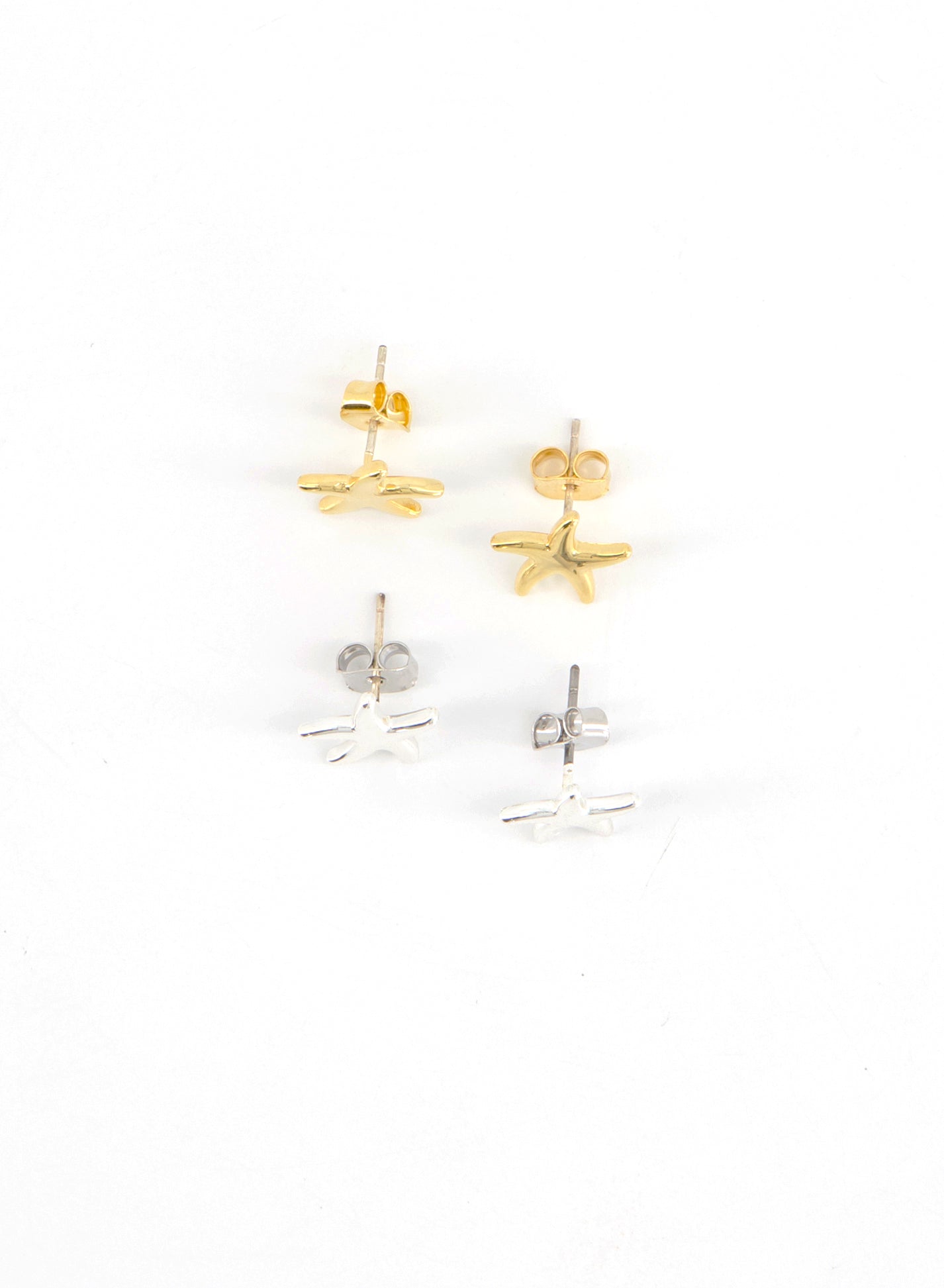 These stud earrings feature a sculptural starfish-inspired silhouette that captures organic movement and fluidity. Polished to a soft shine, their curved lines evoke a gentle tide meeting the shore—subtle yet expressive.